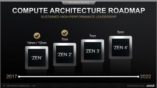 据了解,Zen3是7nm Zen2架构的升级版,制程工艺从7nm(N7)升级到7nm+(N7P),Zen3架构同时会继续升级,提升IPC性能,合理幅度应该在10-15%。至于Zen2架构的大部分设计,包括小芯片、桌面最多16核、服务器最多64核、支持PCIe 4.0及DDR4等等,这些应该不变,接口也会继续兼容。